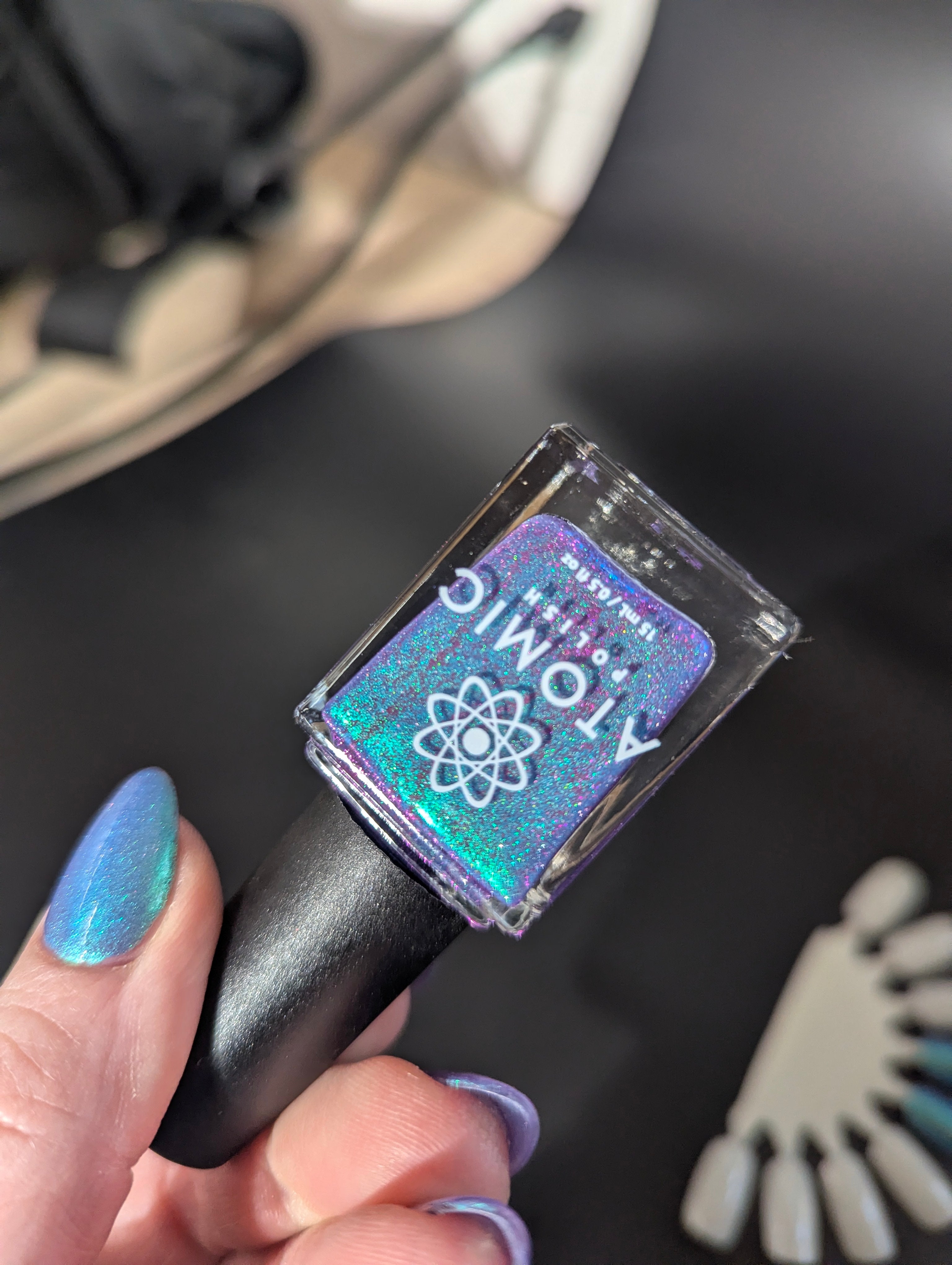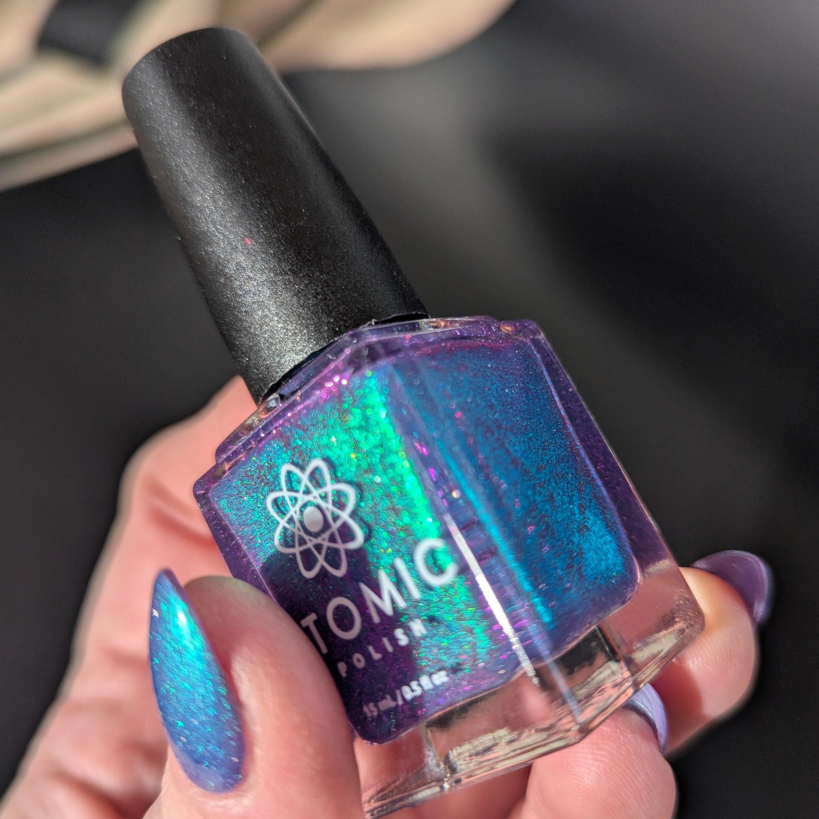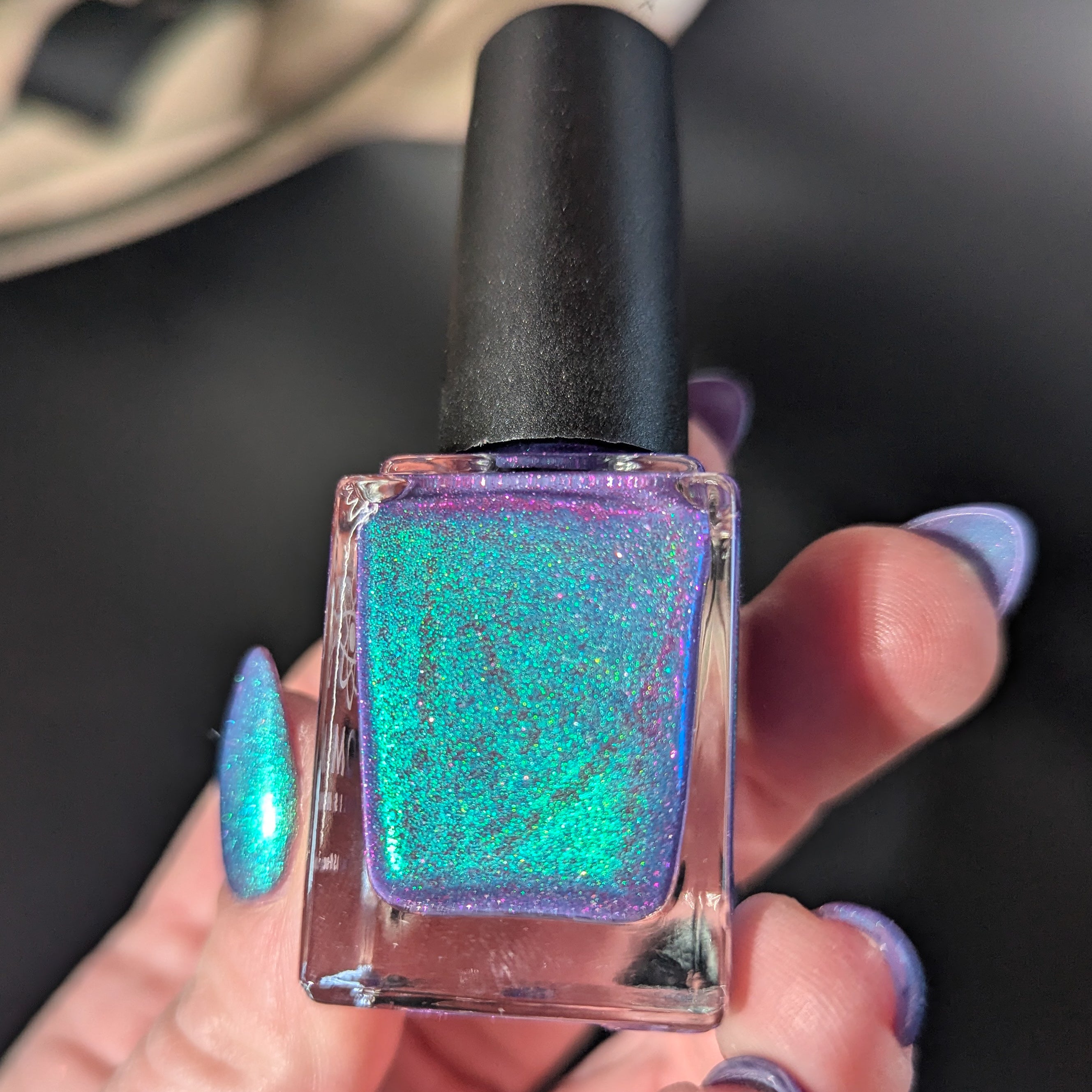 Ice Out is a blurple based polish with a blue/aqua shift and pink reflective glitter. 100% of proceeds from Ice Out will be donated to the Immigrant Rapid Response Fund.